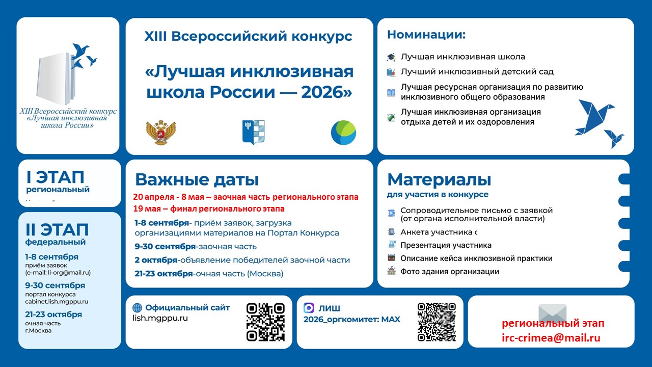 Стартовал региональный этап Всероссийского конкурса «Лучшая инклюзивная школа России — 2026».