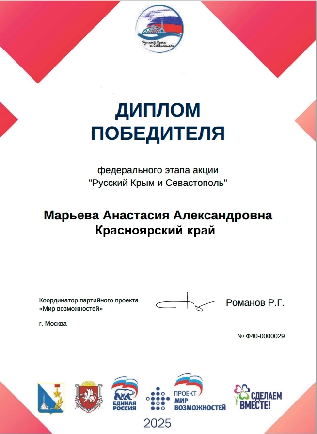 8 сентября наш Центр посетили гости. Победитель федерального этапа акции «Русский Крым и Севастополь» партийного проекта «Единой России» «Мир возможностей» ученица из села Селиваниха Минусинского округа Красноярского края Анастасия Марьева, получившая главный приз - экскурсионную поездку в Крым и Севастополь, поделилась первыми впечатлениями и передала подарки для учреждения от родного края.