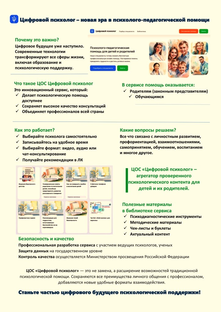 Уважаемые родители! Рады сообщить о запуске нового сервиса психологической поддержки обучающихся – «Цифровой психолог» (читать далее)